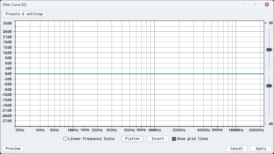 - You open it, view a graph (frequency on the horizontal axis, gain in dB on the vertical), and add or drag control points to create boosts/cuts across low, mid, and high frequencies; changes are applied destructively when you run the effect.