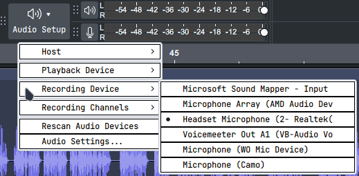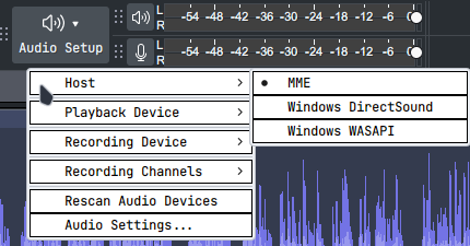 - (Optional) You can also switch your host between MME which only allows you to use inputs as recording devices to Windows WASAPI to be able to record your windows desktop audio.