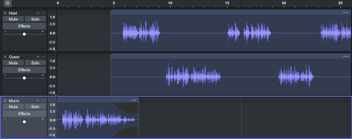 - Deleting removes the selected audio from the timeline without placing it on the clipboard (Delete/Backspace)