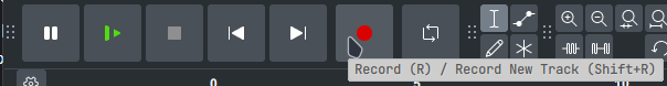 - After selecting a voice track, start recording by pressing the R hotkey or pressing the record button in the transport toolbar.