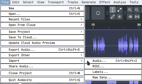 - If you’ve used an external device to record your voice, such as a smartphone you can then import the recording to audacity, it will directly appear as a separate track.