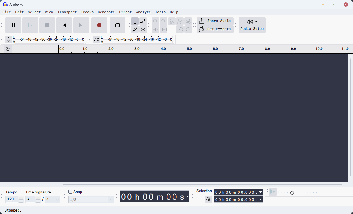 - Audacity automatically creates a project when it is launched, you can immediately start recording.