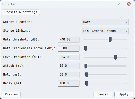 - Effect windows often have a preview button, use it to preview the result while tweaking parameters before applying.