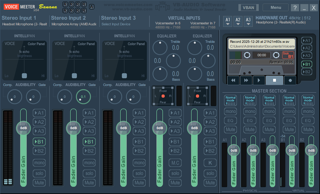 - Voicemeeter is a virtual audio mixer for Windows that routes, mixes, and processes audio between physical devices (microphones, speakers) and software applications, letting you combine multiple inputs, apply basic processing, and send a mixed output to streaming apps or recording software.